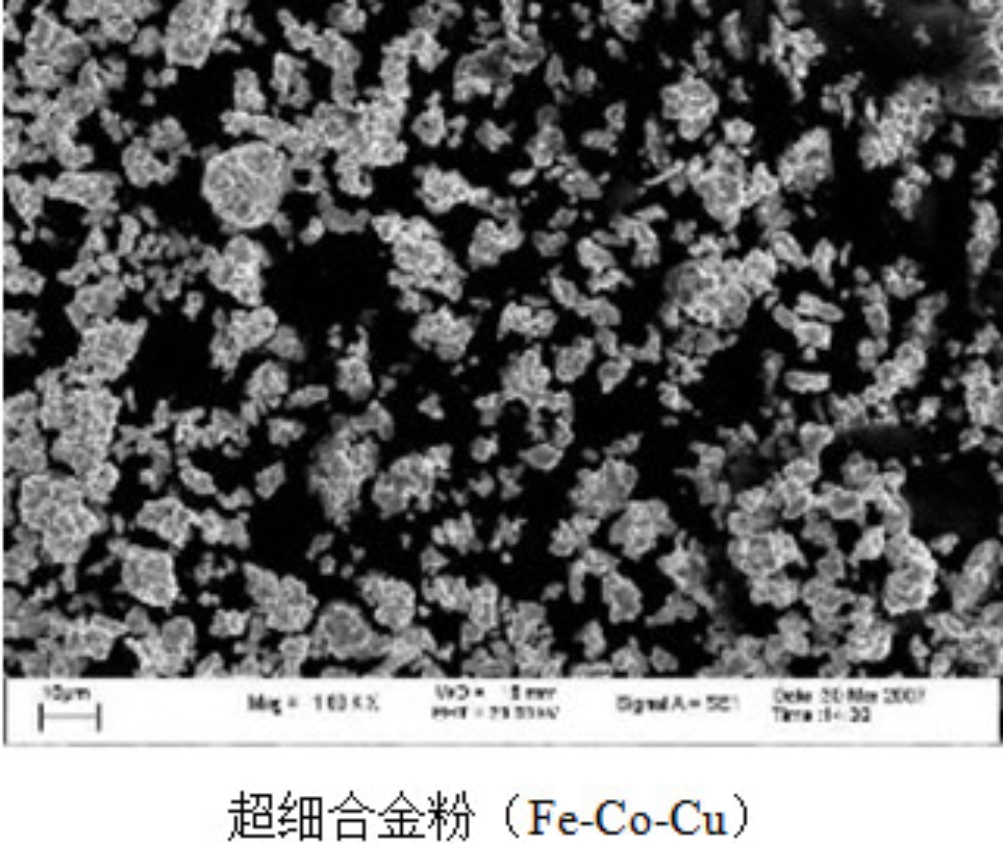该研发室利用溶液沉淀还原法制备复合金属氧化物前驱体,然后通过对前驱体进行氢气还原得到微米级超细合金粉,包括Fe-Ni、Fe-Co-Ni、Fe-Co-Cu、Cu-Sn、Co-Cu-Sn、Fe-Ni-Cu-Sn等。该方法工艺简单,生产流程短,成本低,可以实现规模化生产,产品对金刚石工具等行业有积极促进作用,本项目已与企业合作,实现工业化生产。