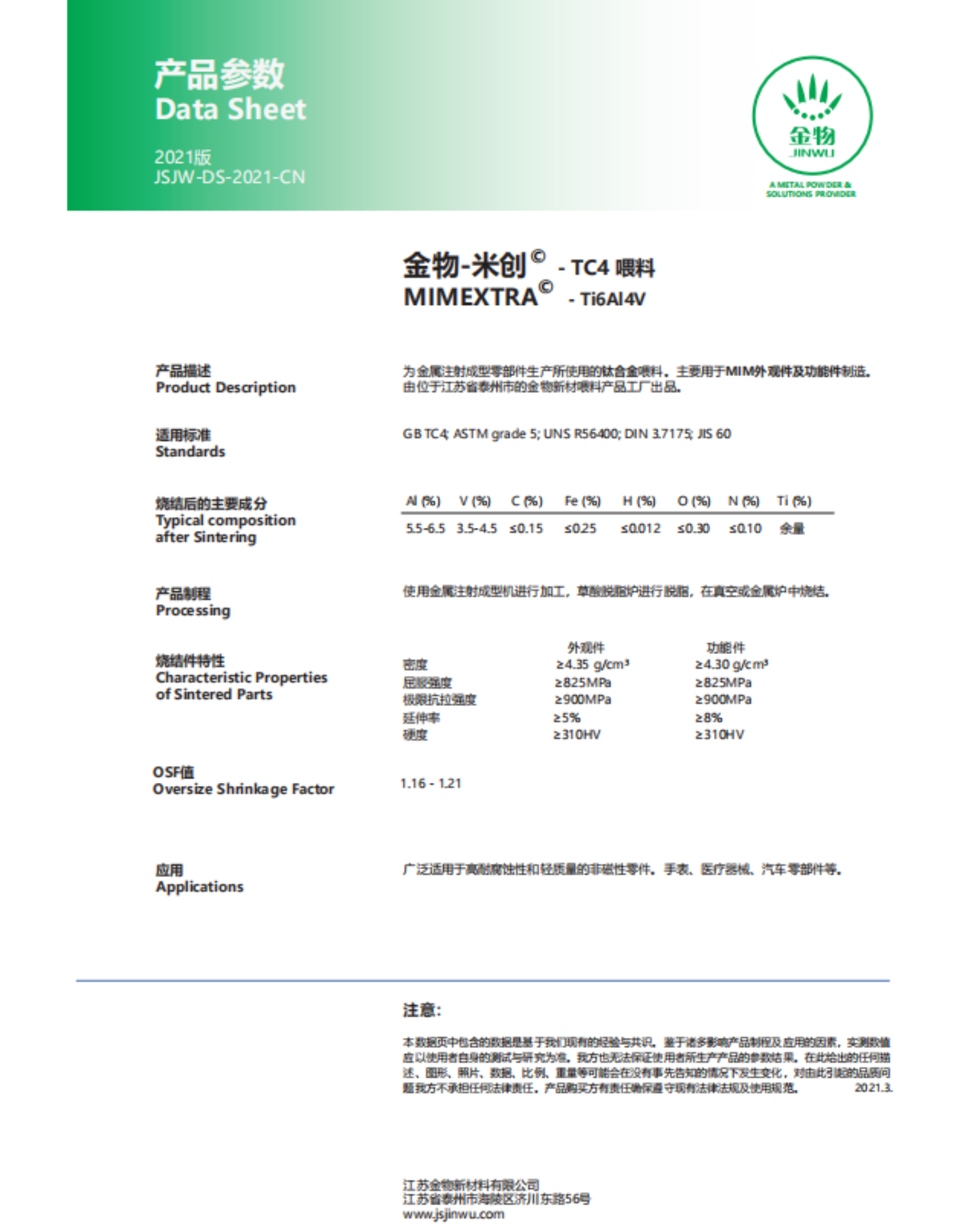 (2)注射成形专用钛合金MIM喂料