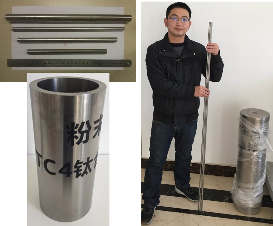 技术团队突破了微细HDH钛合金粉末的低氧控制技术,形成了具有自主知识产权的低成本高性能粉末冶金钛合金生产技术,并在天津某金属材料企业落地量产,建成年产200吨高性能粉末冶金钛合金生产线。目前,生产-100目、-200目、-325目、-500目等不同规格HDH钛粉产品,满足GB、GJB、ASTM、YS相关标准要求。利用粉末冶金技术,实现高性能粉末冶金致密棒坯、管坯和板坯的生产,产品直径可达300mm,长度1500mm,经过变形加工后抗拉强度945-1030MPa,屈服强度885-980MPa,延伸率14-17%。