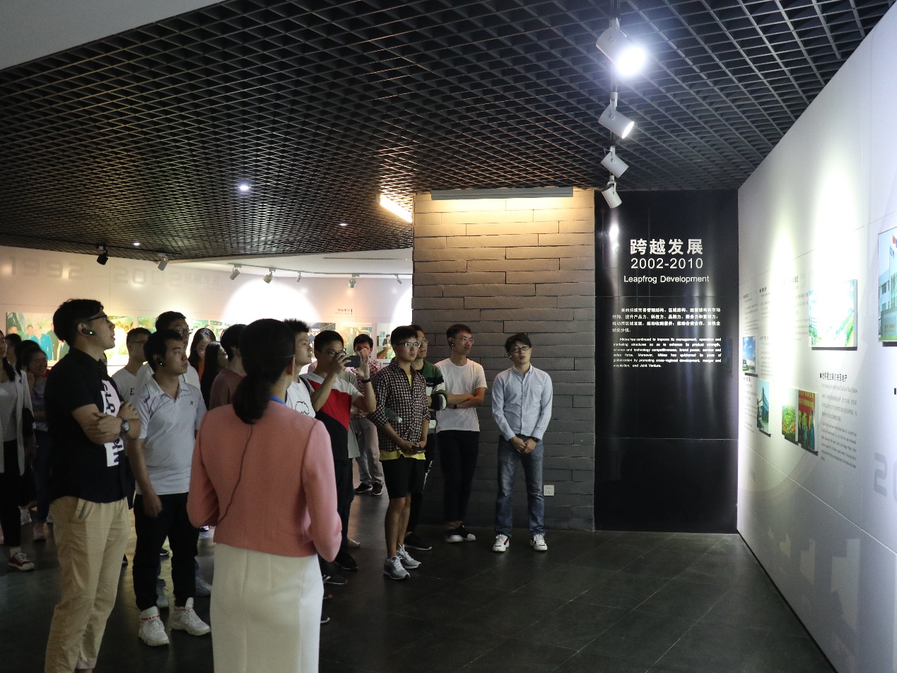 随后,同学们参观了美的集团历史馆,了解美的集团的发展历程——从创业时的 5000 元集资到如今的近4千亿人民币市值的世界500强企业,美的用其近乎裂变式的成长演绎了一个企业从小到大,从弱到强的蜕变历程。