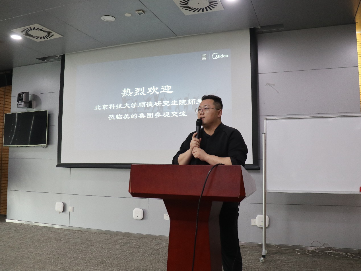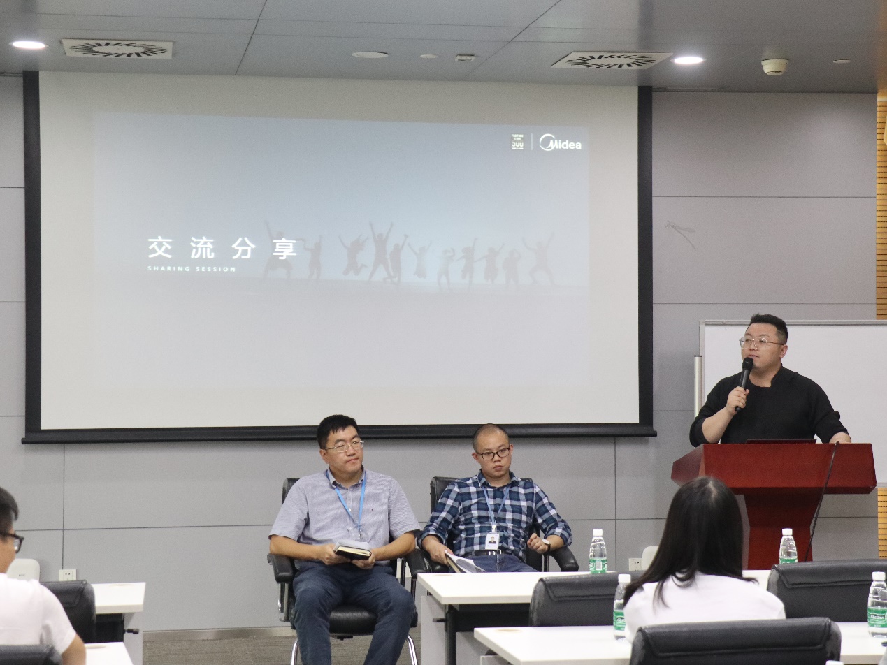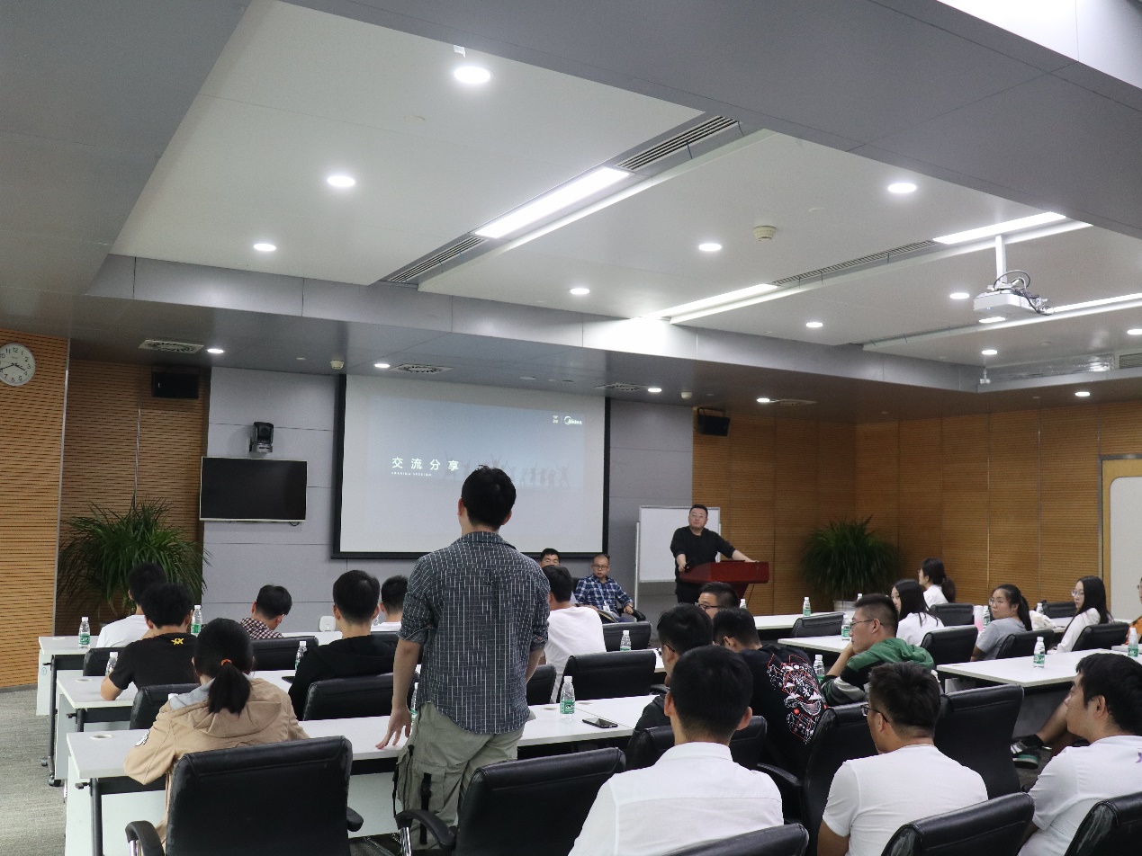 最后,大家来到会议室进行分享交流。美的事业部HR,产品研发部于华宁博士、周宇博士在交流会上向大家分享了美的文化与科研创新之道。通过分享交流,同学们对美的有了更深入的了解。(文字/曾一婕 摄影/刘治民)