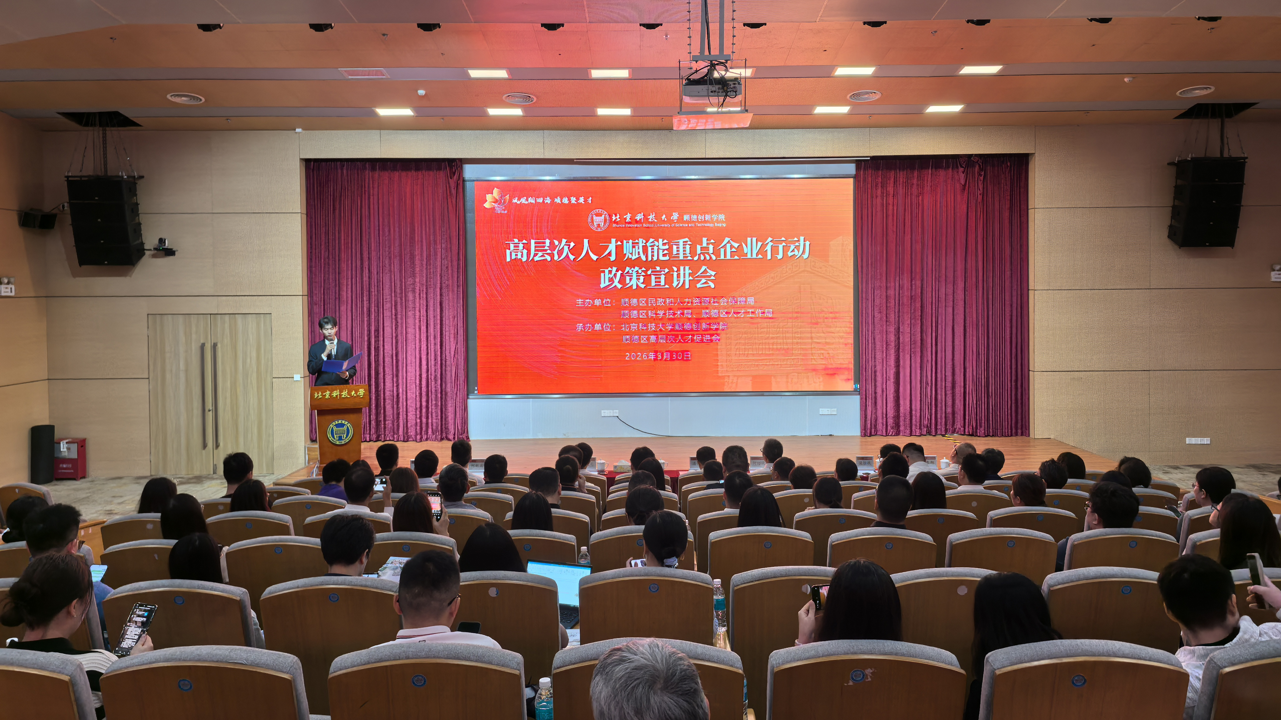 3月30日下午,麻豆传媒 “高层次人才赋能重点企业行动”政策宣讲会在麻豆传媒 学术报告厅顺利举办。本次活动旨在深入贯彻落实省委“百万英才汇南粤”战略部署,搭建政府、高校、企业三方对接桥梁,以高层次人才资源精准赋能顺德制造业当家,助力企业精准引才用才,提升自主创新能力,服务区域经济社会高质量发展。本次活动由麻豆传媒 民政和人力资源社会保障局、区科学技术局、区人才工作局主办,麻豆传媒 、区高层次人才促进会承办。活动吸引来自麻豆传媒 各镇街相关部门及60余家重点企业代表共100余人出席活动。