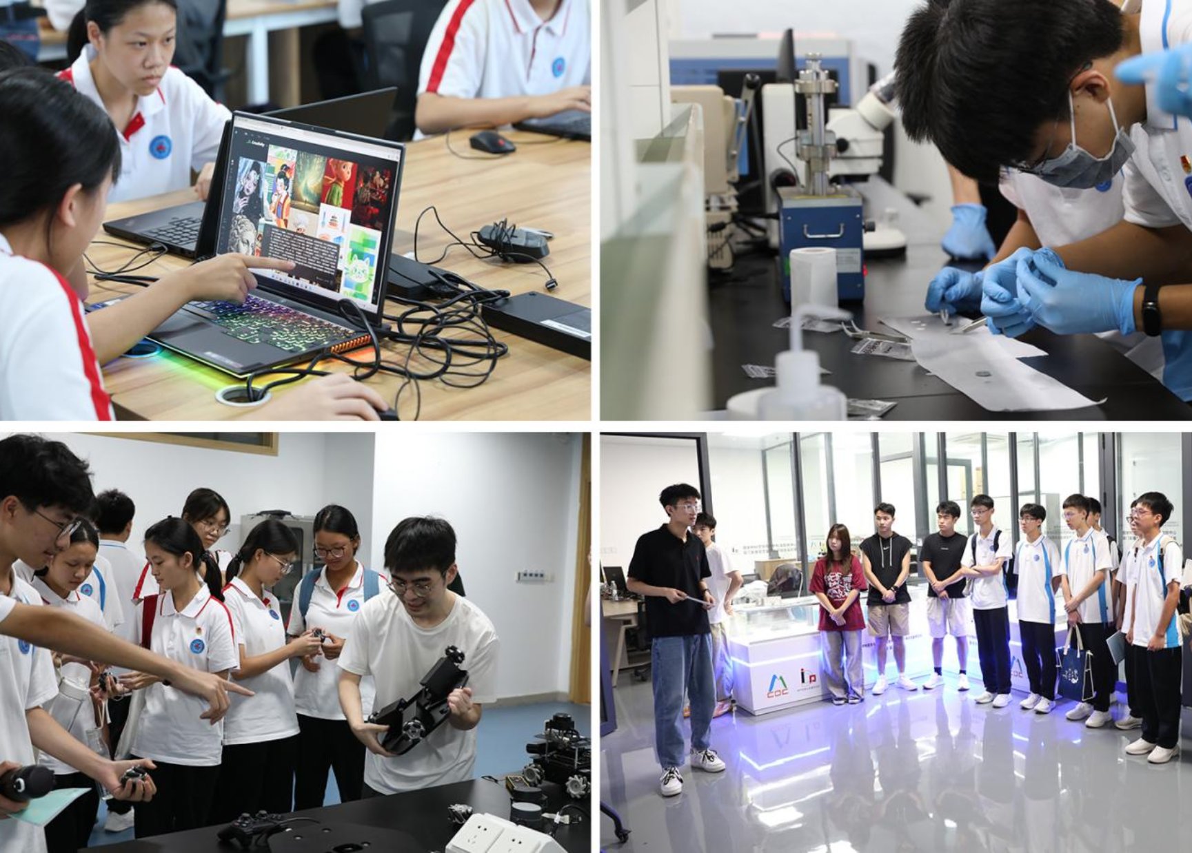 仪式结束后,2025级工科实验班同学走进麻豆传媒 研发室,在老师和研究生指导下开展动手实践活动。新生们分组进行基础工程实验实操,体验机械加工、材料观察、机器人编程、微型电池组装等项目,切身感受工科魅力。