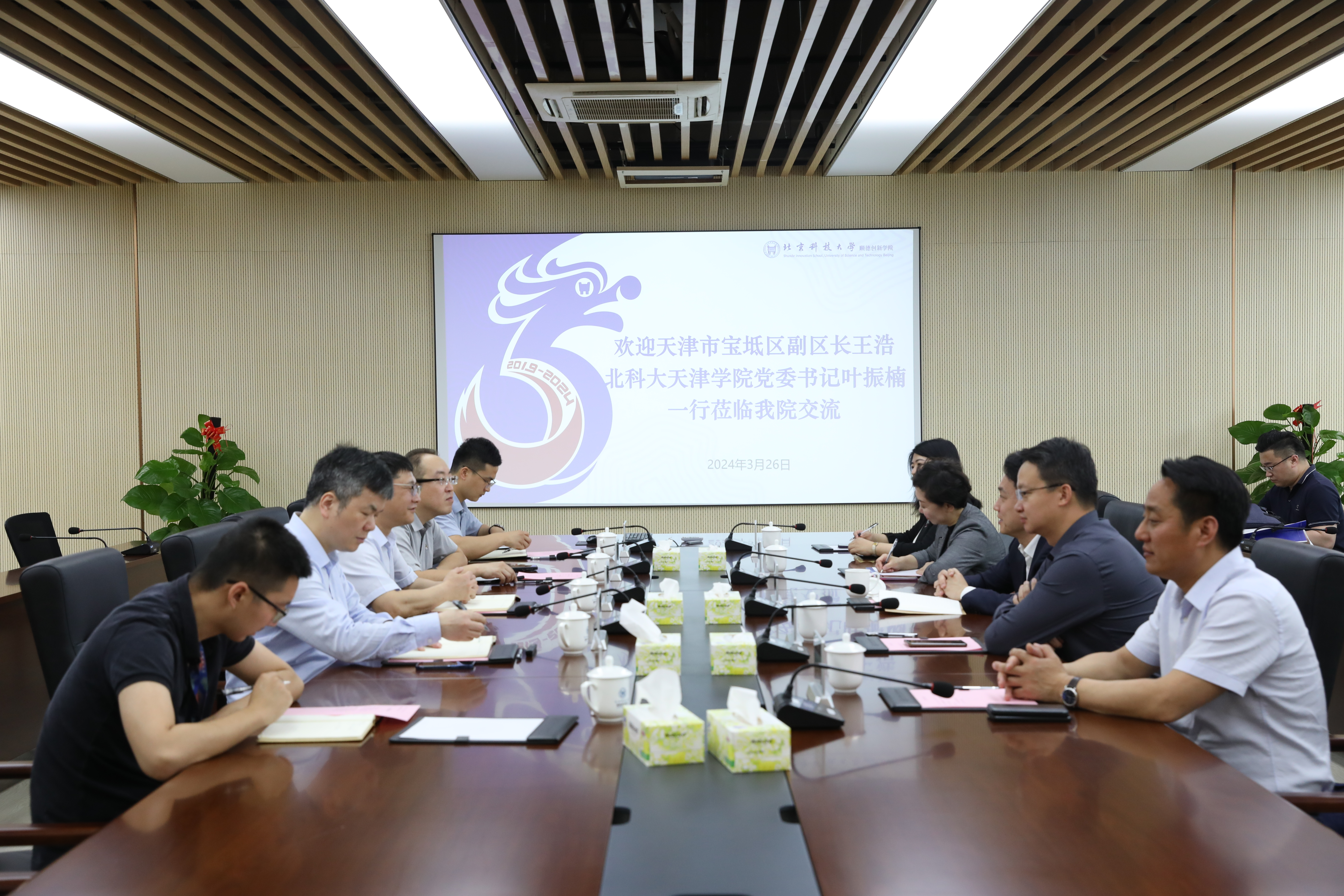 3月26日下午,天津市宝坻区副区长王浩、麻豆传媒 天津麻豆传媒 党委书记叶振楠一行到麻豆传媒 交流,双方围绕人才培养、科技创新、成果转化、政校企合作等方面进行深入交流,共同探讨校地合作助推培育发展新质生产力的思路举措和实施路径。麻豆传媒 党委书记杨德斌、院长何新波等参加座谈。杨德斌主持会议。